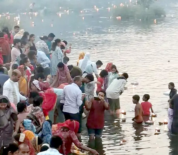 कार्तिक पूर्णिमा पर श्रद्धालुओं ने किया दीपदान
