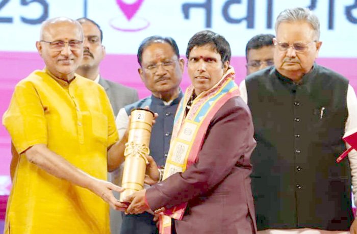राज्य अलंकरण समारोह में उप राष्ट्रपति श्री राधाकृष्णन एवं मुख्यमंत्री श्री साय ने शहीद वीरनारायण सिंह पुरस्कार हिरेश सिन्हा जिला कांकेर को प्रदान किया। यति यतनलाल सम्मान भारतीय कुष्ठ निवारक संघ, कात्रे नगर सोठी जिला जांजगीर-चांपा, गुण्डाधूर सम्मान सुश्री ज्ञानेश्वरी यादव राजनांदगांव, मिनीमाता सम्मान श्रीमती ललेश्वरी साहू दुर्ग, गुरूघासीदास सम्मान संयुक्त रूप से भुवनदास जांगड़े बेमेतरा एवं शशि गायकवाड़ बलौदाबाजार-भाटापारा, ठाकुर प्यारेलाल सिंह पुरस्कार प्राथमिक कृषि साख सहकारी समिति डोमा जिला धमतरी, हबीब तनवीर सम्मान डॉ. कुंज बिहारी शर्मा जिला रायपुर, महाराजा प्रवीरचंद भंजदेव सम्मान सुश्री चांदनी साहू जिला बिलासपुर को प्रदान किया गया।