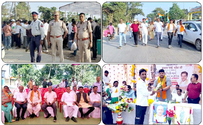 सारंगढ़। भारत के लौह पुरुष, देश की एकता और अखंडता के शिल्पी सरदार वल्लभभाई पटेल जी की 150 वीं जयंती के उपलक्ष्य में रायगढ़ लोकसभा क्षेत्र के सारंगढ़ विधान सभा में सरदार वल्लभभाई पटेल की 150 जयंती के अवसर पर यूनिटी मार्च पदयात्रा का भव्य आयोजन किया गया। करीब 13 किलोमीटर की इस पदयात्रा का शुभारंभ बंजारी मंदिर मल्दा ब से हुआ। जहां सांसद राधेश्याम राठिया ने एक पेड़ मां के नाम लगाकर प्रकृति संरक्षण और मातृ सम्मान का संदेश दिया, और सरदार पटेल को श्रद्धांजलि अर्पित की गई। यहां से यात्रा मल्दा होते हुए बंधापाली, माधोपाली पहुंची जहां इसका भव्य स्वागत किया गया। यहां सांसद राठिया ने उद्बोधन दिए। यहां से दानसरा पहुंची, जहां स्वागत उपरांत 1000 लोगों की भोजन व्यवस्था की गई थी।
