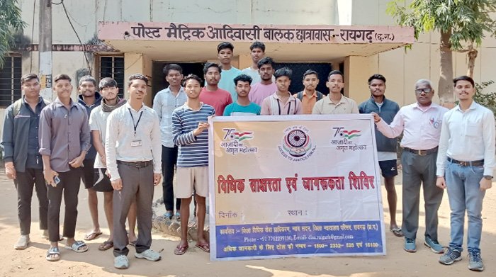 रायगढ़। राष्ट्रीय विधिक सेवा प्राधिकरण एवं राज्य विधिक सेवा प्राधिकरण के निर्देशन में राष्ट्रीय शिक्षा दिवस के अवसर पर प्रधान जिला न्यायाधीश एवं अध्यक्ष श्री जितेन्द्र कुमार जैन के मार्गदर्शन तथा जिला विधिक सेवा प्राधिकरण रायगढ़ न्यायाधीश एवं सचिव श्रीमती अंकिता मुदलियार के नेतृत्व में 11 नवंबर को पोस्ट मैट्रिक आदिवासी बालक छात्रावास रायगढ़ में विधिक साक्षरता एवं जागरूकता शिविर का आयोजन किया गया।