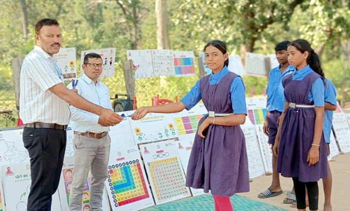 पखांजुर। अबूझमाड़ के तलहटी क्षेत्र कांकेर जिले के अंतिम छोर जहां आवागमन की साधन नहीं, नाव के सहारे पहुंचा जाता है ऐसे क्षेत्र कंदाड़ी में शिक्षकों की पहल से शासन द्वारा जारी निर्देशानुसार धूमधाम से बाल मेला, एफ एल एन मेला और जनजातीय गौरव दिवस मनाया गया। इस अवसर पर बच्चों के द्वारा पढ़ाई का स्तर को बनाए रखने हिंदी, अंग्रेजी, गणित विषय की अवधारणा स्पष्ट करने चार्ट माडल द्वारा विभिन्न गतिविधियां कराकर बच्चों ने अपना हूनर दिखाई। बच्चों के द्वारा जनजातीय पखवाड़ा और बाल मेला अवसर पर चित्रकला प्रतियोगिता, खेलकूद प्रतियोगिता आयोजित हुई। बच्चों के द्वारा रंगारंग सांस्कृतिक कार्यक्रम प्रस्तुत किया गया जिसमें पालकों और बच्चों में भी उत्साह का माहौल देखने को मिला। सभी लोगों ने भी इस पहल की सराहना करते हुए कहा कि ऐसे कार्यक्रम से बच्चों का सर्वांगीण विकास में सहायक होता है। राज्यपाल पुरस्कृत शिक्षक डॉ कृष्णपाल राणा द्वारा भारत के प्रथम प्रधानमंत्री जवाहरलाल नेहरु जी के योगदान, जल जंगल जमीन के संरक्षण का संदेश देने वाले धरती आबा बिरसा मुंडा, शहीद गेंदसिंह, वीर नारायण सिंह, रानी दुर्गावती, सुखदेव पातर, इंदरू केंवट, कंगलू कुम्हार, चिंतु देहारी, गुंडाधूर जैसे स्वतंत्रता सेनानीयों के बलिदान और उनके योगदान को विस्तार पूर्वक जानकारी दी गई। जनजातीय पखवाड़ा के अवसर पर बच्चों के द्वारा परलकोट के जमिंदार भूमिया राजा गेंदसिंह बाऊ जी के जीवन पर शानदार नाटक प्रस्तुत किया गया। सभी प्रतिभागियों को पुरस्कृत किया गया और सभी उपस्थित बच्चों को स्मृति चिन्ह भेंट किया गया। इस कार्यक्रम को सफल बनाने में डॉ कृष्णपाल राणा, राजेश खरे, सत्यप्रकाश भार्गव संजीत कुमार साना एवं सभी पालक बच्चों का महत्वपूर्ण।