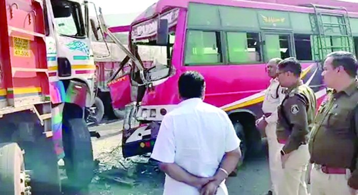 ट्रक व पूर्णागिरी बस में भिड़ंत, बस चालक समेत 12 यात्री घायल