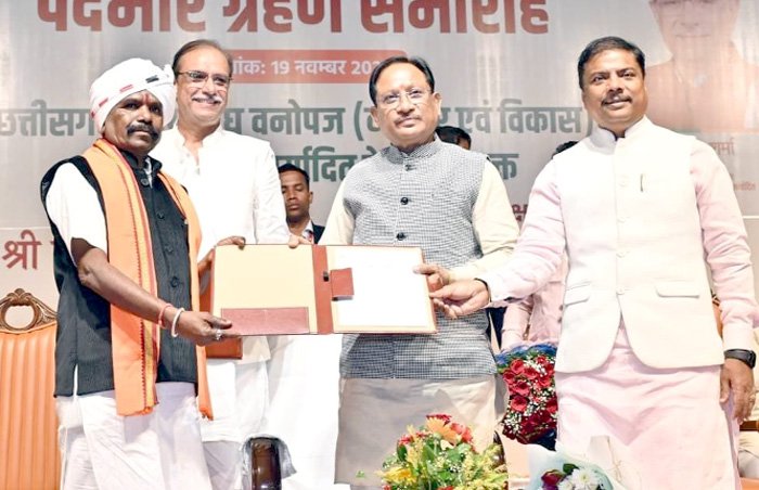 रायपुर। मुख्यमंत्री विष्णु देव साय आज राजधानी रायपुर स्थित मेडिकल कॉलेज सभागार में आयोजित छत्तीसगढ़ राज्य लघु वनोपज (व्यापार एवं विकास) सहकारी संघ मर्यादित के नवनियुक्त अध्यक्ष श्री रूप साय सलाम और उपाध्यक्ष श्री यज्ञदत्त शर्मा के पदभार ग्रहण कार्यक्रम में शामिल हुए। उन्होंने नए दायित्वों के लिए अध्यक्ष तथा उपाध्यक्ष को हार्दिक बधाई और शुभकामनाएं दीं।