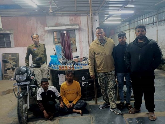 रायगढ़। जूटमिल पुलिस ने रविवार 23 नवंबर को काशीराम चौक में नाकेबंदी के दौरान अवैध शराब परिवहन के एक बड़ी कार्रवाई करते हुए दो आरोपियों को गिरफ्तार किया है। थाना प्रभारी जूटमिल निरीक्षक प्रशांत राव को मुखबिर से सूचना मिली थी कि दो युवक काले रंग की मोटरसाइकिल पर पुराना सारंगढ़ बस स्टैंड की ओर से काशीराम चौक की तरफ अवैध शराब लेकर आ रहे हैं, जिस पर पुलिस ने तत्काल नाकेबंदी कर दोनों को पकड़ा गया।