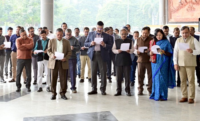 बिलासपुर। 26 नवम्बर, 1949 को संविधान सभा द्वारा भारत के संविधान को अंगीकृत किया गया था, जिसे 26 जनवरी, 1950 को देश में लागू किया गया । इसी महान संविधान की शक्ति और मार्गदर्शन से आज भारत पूरे विश्व में सबसे बड़े लोकतांत्रिक राष्ट्र के रूप में प्रतिष्ठित है। इसी क्रम में, दक्षिण पूर्व मध्य रेलवे में आज संविधान दिवस का गरिमापूर्ण आयोजन आज दिनांक 26 नवंबर 2025 को किया गया । दक्षिण पूर्व मध्य रेलवे, मुख्यालय परिसर, बिलासपुर में आयोजित कार्यक्रम में महाप्रबंधक श्री तरुण प्रकाश ने संविधान की प्रस्तावना का वाचन किया। तत्पश्चात सभी विभागाध्यक्षों, अधिकारियों तथा कर्मचारियों ने एकजुट होकर प्रस्तावना का सामूहिक पाठ किया और संविधान के प्रति अपनी प्रतिबद्धता दोहराई । इस अवसर पर अपर महाप्रबंधक सहित सभी विभागाध्यक्ष, अधिकारी एवं बड़ी संख्या में कर्मचारी उपस्थित रहे । इसी प्रकार रायपुर, बिलासपुर और नागपुर मंडलों में भी मंडल रेल प्रबंधकों के नेतृत्व में अधिकारियों एवं कर्मचारियों ने प्रस्तावना का वाचन कर संविधान दिवस की गरिमा को चरितार्थ किया।