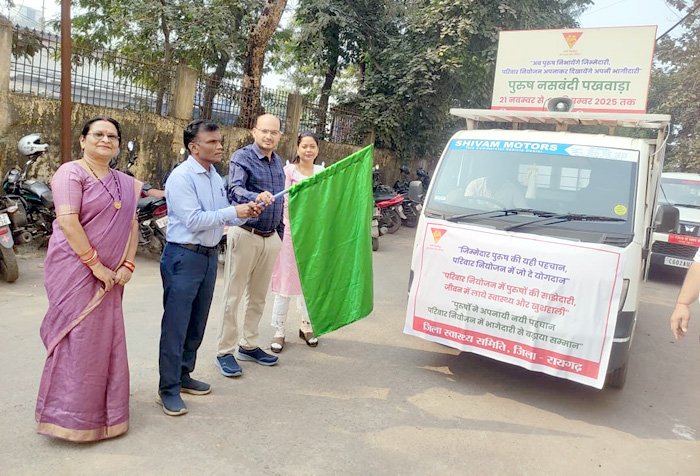 इसी क्रम में पखवाड़े के सफल संचालन हेतु मुख्य चिकित्सा एवं स्वास्थ्य अधिकारी डॉ. अनिल कुमार जगत ने जिला चिकित्सालय से जन-जागरूकता रथ को हरी झंडी दिखाकर रवाना किया। यह रथ शहर और ग्रामीण क्षेत्रों में पहुंचकर पुरुष नसबंदी से संबंधित सही जानकारी लोगों तक पहुंचाएगा। इस अवसर पर डीएचओ डॉ. भानू प्रताप पटेल, जिला कार्यक्रम प्रबंधक सुश्री रंजना पैंकरा एवं स्वास्थ्य विशेषज्ञ डॉ. राजेश मिश्रा मौजूद रहे।
