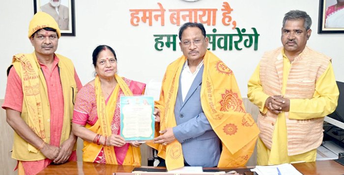 रायपुर। मुख्यमंत्री विष्णु देव साय से आज शाम राजधानी रायपुर स्थित मुख्यमंत्री निवास कार्यालय में अखिल विश्व गायत्री परिवार के प्रतिनिधिमण्डल ने सौजन्य मुलाकात की। प्रतिनिधिमण्डल ने मुख्यमंत्री श्री साय को आगामी 09 दिसंबर से 12 दिसंबर तक सक्ती जिले के ग्राम हसौद में आयोजित होने वाले 251 कुण्डीय गायत्री महायज्ञ में शामिल होने हेतु आमंत्रित किया। मुख्यमंत्री ने आमंत्रण के लिए गायत्री परिवार के सदस्यों का धन्यवाद देते हुए आयोजन की सफलता के लिए शुभकामनाएँ दीं। इस अवसर पर श्री निर्मल सिन्हा, श्री कैलाश साहू, श्री कृष्ण कुमार जायसवाल, श्री आदर्श वर्मा, श्री हेमंत पटेल एवं अन्य सदस्य उपस्थित थे।