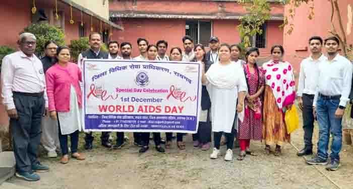 इस अवसर पर जिला न्यायालय परिसर रायगढ़ में जिला विधिक सेवा प्राधिकरण, रायगढ़ के कर्मचारीगण एवं पैरालीगल वालिंटियर्स द्वारा विश्व एड्स दिवस मनाया गया। जिला न्यायालय परिसर रायगढ़ में उपस्थित विधि के छात्र-छात्राएं एवं परिसर में उपस्थित आमजनों के साथ एचआईवी संक्रमण के बारें में जागरूकता लानेे एवं एड्स के बारे में शिक्षित करने और इस बीमारी के प्रसार को रोकने के लिए प्रयास करने हेतु जानकारी दिया गया। इसी अनुक्रम में प्राधिकरण का मुख्य कार्यो से नालसा द्वारा संचालित योजनाओं के संबंध में जानकारी प्रदान किया गया, आपदा पीडि़तों को विधिक सेवा सहायता, यौन शोषण पीडि़तों के लिए विधिक सेवाएं, श्रमिकों के लिए विधिक सेवाएं, मानसिक रूप से बीमारी और मानसिक रूप से विकलांग व्यक्तियों के लिए विधिक सेवाएं,संवाद, डॉन, जागृति के बारे में लोगों को नि:शुल्क कानूनी सहायता एवं नालसा, सालसा की समस्त योजनाओं से अवगत कराना है। इस प्राधिकरण द्वारा यहॉ महिलाओं को विशेष सुरक्षा एवं सहायता दी जाती है। इस अवसर पर जिला विधिक सेवा प्राधिकरण, रायगढ़ के कर्मचारीगण गिरीश साहू, देवनंदन साहू, रविन्द्र बेहरा, उजागर सिंह चौहान, एवं पैरालीगल वालिंटियर्स, हरीश षडंगी, आयुश देवांगन, रश्मि बेहरा, वृहस्पति सिदार, तरूण बेहरा लीगल एड डिफेंस कौंसिल के स्टॉफ भ्रमर गुप्ता, रमेश कुमार डनसेना, अभिषेक शर्मा, विधि के छात्र-छात्राएं एवं जनसामान्य उपस्थित रहे।