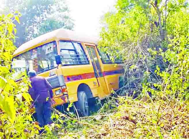 ब्रेक फेल : झाडिय़ों में जा घुसी स्कूल बस