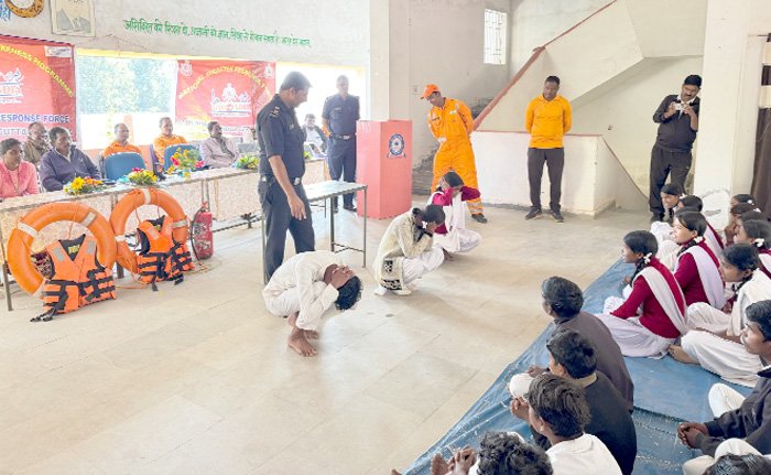 आपदा प्रबंधन पर जागरूकता सत्र- एनडीआरएफ टीम ने भूकंप, बाढ़, अग्निकांड, सडक़ दुर्घटना एवं अन्य आपदाओं की स्थिति में क्या करें और क्या न करें इस विषय पर विस्तृत जानकारी दी। विद्यार्थियों को प्राथमिक उपचार, बचाव तकनीक तथा सुरक्षित निकासी के तरीकों से अवगत कराया। लाइव डेमोंस्ट्रेशन- टीम ने असली उपकरणों का उपयोग करते हुए राहत एवं बचाव की विभिन्न विधियों का प्रदर्शन किया। इससे विद्यार्थियों में आपदा की परिस्थितियों से निपटने की समझ और क्षमता विकसित हुई। 3 सामुदायिक सहभागिता- ग्राम पंचायत के सरपंच की मौजूदगी ने कार्यक्रम को सामुदायिक स्तर पर विशेष महत्व प्रदान किया। स्थानीय जनता को भी कार्यक्रम के दौरान आपदाओं से सुरक्षा के उपायों के बारे में जागरूक किया गया। 4.विद्यालय परिवार की सक्रिय भूमिका- प्राचार्य एवं शिक्षकगण ने कार्यक्रम की व्यवस्था को सफल बनाने में विशेष योगदान दिया। विद्यार्थियों ने भी उत्साहपूर्वक प्रश्न पूछे और स्वयं प्रशिक्षण में शामिल हुए। एनडीआरएफ टीम के मार्गदर्शन से विद्यार्थियों में आपदा प्रबंधन की वास्तविक समझ विकसित हुई। इसी प्रकार विकासखंड मनोरा के ही पी.एम.श्री.स्कूल सेजेस मनोरा में भी प्राचार्य श्री संशोधन मिंज के नेतृत्व एवं सहायक विकासखंड शिक्षा अधिकारी श्री गतपाल राम की उपस्थिति में आपदा प्रबंधन पर प्रशिक्षण दिया गया जिसमें 316 छात्र-छात्राओं एवं संस्था के उपस्थित शिक्षको में समझ विकसित हुई। कार्यक्रम ने न केवल जागरूकता बढ़ाई बल्कि दोनों विद्यालय परिसर में आपदा-प्रबंधन संस्कृति को मजबूत किया। कार्यक्रम के अंत में विद्यालय प्रबंधन ने एनडीआरएफ टीम का आभार व्यक्त किया। सभी उपस्थित जनों ने इस कार्यक्रम को अत्यंत उपयोगी और प्रेरणादायक बताया। फेमैक्स 2025-26 का यह आयोजन निश्चित रूप से विद्यालय और समुदाय दोनों के लिए आपदा-प्रबंधन की दिशा में एक महत्वपूर्ण कदम है।