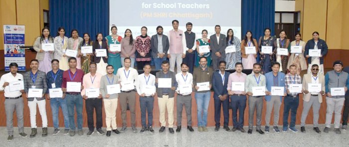 रायगढ़। छत्तीसगढ़ के अनेकों पीएमश्री स्कूल अंतर्गत अध्यापन कार्य का रहे विज्ञान एवं गणित शिक्षकों का क्षमता विकास हेतु एवं आधुनिक टेक्नोलॉजी में पारंगत बनाने के उद्देश्य से छत्तीसगढ़ शासन स्कूल शिक्षा विभाग एवं समग्र शिक्षा के निर्देशानुसार पीएमश्री राज्य प्रभारी श्रीआशीष गौतम के साथ छत्तीसगढ़ के 151 विज्ञान शिक्षकों ने आईआईटी जम्मू में प्रशिक्षण प्राप्त किया ज्ञात हो कि भारत सरकार द्वारा संचालित पीएमश्री स्कूल जिसका मुख्य उद्देश्य राष्ट्रीय शिक्षा नीति 2020 (एनईपी 2020) को प्रभावी रूप से लागू करना और देशभर में स्कूली शिक्षा की गुणवत्ता को बेहतर बनाना है। पीएम श्री स्कूल, अन्य स्कूलों के लिए रोल मॉडल होंगे ताकि शिक्षा में समानता और गुणवत्ता लाई जा सके जहाँ डिजिटल लर्निंग, स्मार्ट क्लास, लैब्स, ग्रीन स्कूल, खेल और कौशल शिक्षा जैसी सुविधाएँ उपलब्ध कराया जा रहा है समग्र शिक्षा अर्थात् बच्चों का ज्ञान, कौशल, चरित्र और मूल्य आधारित विकास करना केवल परीक्षाआधारित शिक्षा से हटकर प्रयोगात्मक और व्यावहारिक शिक्षा को बढ़ावा देना विद्यार्थियों को समान अवसर ग्रामीण और शहरी सभी क्षेत्रों में गुणवत्तापूर्ण शिक्षा उपलब्ध कराना। गरीब और मध्यम वर्ग के बच्चों को भी बेहतर स्कूलिंग वातावरण देना। जिसके लिए पीएम श्री स्कूल में सेवायें प्रदान कर रहे शिक्षकों को भी नई शिक्षा नीति के अनुरूप प्रशिक्षित करना आवश्यक है इसी उद्देश्य से रायपुर जिले से 12 पीएम श्री स्कूल्स के शिक्षकों सहित राज्यभर से 151 शिक्षकों का प्रशिक्षण आईआईटी जम्मू कश्मीर में आयोजित हुई है जिसमे शिक्षकों को साइंस एंड टेक्नोलॉजी, स्मार्ट लैब थ्रीडी प्रिंटर, गूगल क्लासरूम, सायबर सिक्योरिटी,सायकोलाजिकल इंपैक्ट, ड्रोन टेक्नोलॉजी, ऑनलाइन प्लेटफार्म आधारित बेहतर कक्षा संचालन के तरीके सिखायें गए एवं आईआईटी लैब का अवलोकन करवाया गया इस हेतु पीएमश्री स्कूल घरघोड़ा, खरसिया, कोंडातराई, रायगढ़, लैलूंगा, तमनार एवं धरमजयगढ़ के शिक्षकों का चयन हुआ है जिसमे शिक्षक श्वेता सिंह, पूनम दुबे, रोशन लाल साहू, भानु प्रताप पटेल, विकास बारीक़, देवाशीष मिश्रा, सत्यजीत पुरकायस्थ इसके साथ छत्तीसगढ़ के चयनित पीएमश्री विद्यालयों से 151 शिक्षक भी भारतीय प्रौद्योगिकी संस्थान (आईआईटी) जम्मू में आयोजित पांच दिवसीय कार्यशाला में सहभागिता प्रदान किए एवं सभी प्रतिभागी शिक्षकों को प्रमाणपत्र प्रदान किया गया। समापन समारोह में शिक्षिका श्वेता सिंह, पी एम श्री सेजेस घरघोड़ा ने पाँच दिवसीय प्रशिक्षण पर अपना फीडबैक प्रस्तुत किया। उन्होंने बताया कि यह प्रशिक्षण अत्यंत उपयोगी, प्रेरणादायक और ज्ञानवर्धक रहा। पाँचों दिनों में मिले मार्गदर्शन, गत