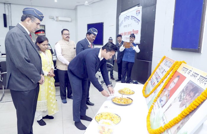 अमर शहीदों के चित्र पर पुष्पांजलि अर्पित कर किया गया नमन° रायगढ़ के हॉनरी सूबेदार मेजर सुखू राम बारबा को उत्कृष्ट सेवा के लिए किया गया सम्मानित