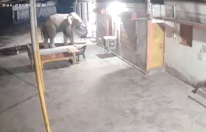 इस संबंध में मिली जानकारी के अनुसार धरमजयगढ़ वन मंडल अंतर्गत छाल रेंज के ऐडू संगम नदी के पास बीती रात एक हाथी भोजन की तलाश में भटकते हुए गांव में घुस गया, जिसे देख पूरे गांव में सन्नाटा पसर गया। इस दौरान हाथी ने गांव के ठाकुर देव मंदिर पहुंचा और उसका गेट को तोड़ दिया। उसके बाद गांव में विचरण करने लगा, जिसका दृश्य वहां लगे सीसीटीवी कैमरे में कैद हुआ है, जिसमें देखा जा सकता है, 4 मिनट से अधिक समय तक कैसे हाथी गांव में मौजूद रहा। इस दौरान उक्त हाथी गांव में और नुकसान पहुंचाता इससे पहले लोगों ने इसकी जानकारी हाथी मित्र दल को दिया, जिससे तत्काल टीम मौके पर पहुंची और सायरन बजाते हुए हाथी को जंगल की तरफ भगाया। ठीक इसी तरह कापू परिसर के मिरीगुडा में विचरण कर रहे एक हाथी ने कमरई परिसर में एक किसान के दो बोरी धान को खाकर बाकारूमा परिक्षेत्र के चिरोडीह परिसर में विचरण कर रहा है। बताया जा रहा है कि इससे पहले यही हाथी ग्राम पुसल्दा में हरिशचन्द्र राठिया के घर के गेट को भी तोडऩे का प्रयास किया परंतु यहां भी हाथी मित्र दल टीम की सजगता से नुकसान होने से बच गया था। हाथी मित्र दल की टीम छाल रेंज में विचरण कर रहे हाथियों के मूवमेंट पर लगातार नजर बनाए हुए है। साथ ही रात के समय कच्ची मार्ग का उपयोग नहीं करने अपील भी की जा रही है। हाथी मित्र दल की टीम ने पुसल्दा, ऐडू, खेदापाली, बहेरामुडा,चीतापाली रामनगर, ऐडू संगम के अलावा आसपास के ग्रामीणों से खास कर रात के समय सावधानी बरतने अपील की है, ताकि उनके क्षेत्र में किसी प्रकार की अनहोनी घटना ना हो।