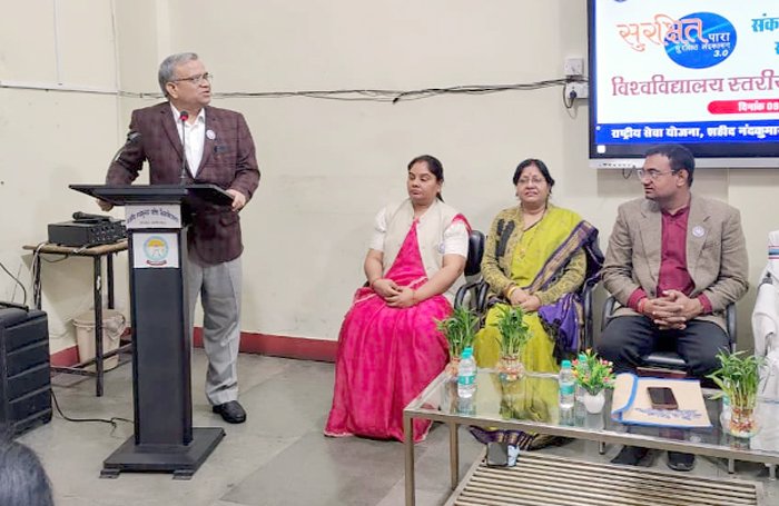 प्रात: 11 से सत्र की शुरुआत विद्या कला एवं ज्ञान की देवी मां शारदा की पूजा अर्चना पश्चात छत्तीसगढ़ के राजकीय गीत, एन एस एस के लक्ष्य गीत एवं विश्वविद्यालय के कुल गीत का क्रमश: सामूहिक स्वरों में गायन के साथ किया गया। स्वागत उद्बोधन विश्वविद्यालय के कार्यक्रम समन्वयक डॉ.रविंद्र कौर चौबे ने दिया वहीं अपने उद्बोधन में विश्वविद्यालय के कुलपति डॉ. ललित प्रकाश पटैरिया ने कहा कि राष्ट्रीय सेवा योजना राष्ट्र सेवा की भावना जागती है जब तक विद्यार्थियों में देश के लोगों में राष्ट्र सेवा का भाव ना हो तो वह देश आगे नहीं बढ़ सकता। इस सेवा भावना को प्रतिष्ठित करने में राष्ट्रीय सेवा योजना के अधिकारी एवं इससे जुड़े लोग बखूबी निर्वहन करते हैं।