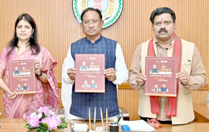 रायपुर। मुख्यमंत्री विष्णु देव साय ने आज विधानसभा स्थित अपने कार्यालय कक्ष में प्रधानमंत्री आवास योजना (ग्रामीण) के अंतर्गत अपनी प्रथम मंत्रिपरिषद बैठक में 18 लाख आवास स्वीकृत किए जाने के निर्णय के दो वर्ष पूर्ण होने के अवसर पर एक आकर्षक कॉफी टेबल बुक का अनावरण किया। यह पुस्तक राज्य में ग्रामीण आवास योजना के तहत प्राप्त ऐतिहासिक प्रगति, नवाचारों और उपलब्धियों को प्रभावी रूप से प्रस्तुत करती है।