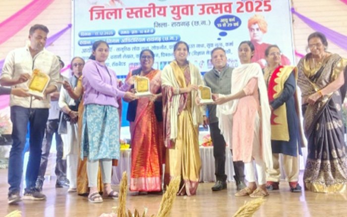 रायगढ़। जिला प्रशासन तथा खेल एवं युवा कल्याण विभाग रायगढ़ द्वारा विगत 17 दिसंबर 2025 को जिला युवा उत्सव 2025 का गरिमामय आयोजन नगर निगम रायगढ़ के पंजरी प्लांट अवस्थित ऑडिटोरियम में किया गया। उत्सव में कुल 14 विधाओं में प्रतियोगिता आयोजित हुई।जिला स्तरीय युवा उत्सव में जानकी कॉलेज ऑफ एजुकेशन के चेयरमैन शिरीष सारडा डायरेक्टर श्रीमती तृप्ति अग्रवाल के संरक्षण में प्राचार्य डॉ गजेंद्र चक्रधारी के मार्गदर्शन में जानकी कॉलेज ऑफ एजुकेशन धनुहारडेरा रायगढ़ के छात्र छात्राओं ने प्रतिभागी स्वरूप हिस्सा लिया और उत्कृष्ट उम्दा सराहनीय प्रदर्शन करते हुए सुवा नृत्य में प्रथम स्थान प्राप्त किया वहीं कर्मा नृत्य में भी बेहतर प्रदर्शन द्वारा द्वितीय स्थान प्राप्त किया। विधा कविता लेखन में प्रथम स्थान मयंक दास एमएससी थर्ड सेमेस्टर बॉटनी ने प्राप्त किया। वाद विवाद प्रतियोगिता के पक्ष में बिंदिया गुप्ता एमएससी थर्ड सेमेस्टर बॉटनी ने तृतीय स्थान प्राप्त की।