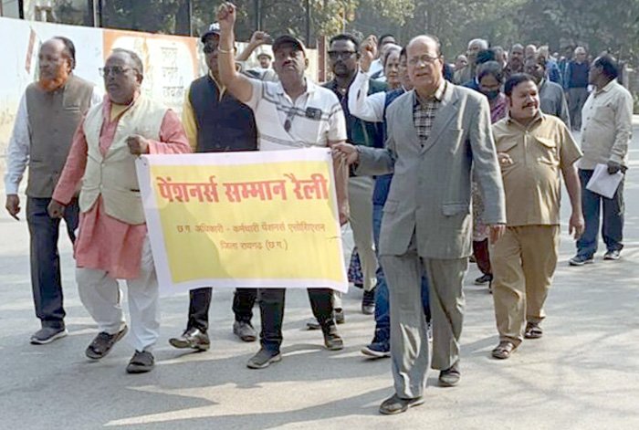 रायगढ़। छत्तीसगढ़ अधिकारी कर्मचारी पेंशनर्स एसोसिएशन जिला शाखा रायगढ़ ने 17 दिसंबर को राष्ट्रीय पेंशन दिवस मनाया. इस अवसर पर शहीद कर्नल त्रिपाठी स्टेडियम परिसर में 81 वर्षीय पेंशनर रमेश त्रिपाठी की अध्यक्षता में सभा आयोजित हुई, फिर पेंशनर्स सम्मान रैली निकाली गई.