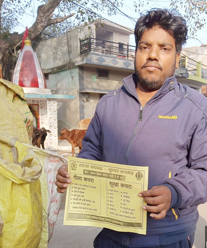 रायगढ़। नगर निगम रायगढ़ द्वारा शहर को स्वच्छ, सुंदर एवं कचरा मुक्त बनाने के उद्देश्य से सघन स्वच्छता अभियान चलाया जा रहा है। इस अभियान के तहत स्वच्छता दीदियों द्वारा घर-घर एवं दुकानों में पहुंचकर नागरिकों को गीला एवं सूखा कचरा अलग-अलग (सेग्रीगेशन) कर के देने के लिए जागरूक किया जा रहा है। नागरिकों से अपील की जा रही है कि वे कचरा निर्धारित समय पर नगर निगम के वाहनों को ही दें तथा सडक़, नाली या सार्वजनिक स्थानों पर कचरा न फेंकें।