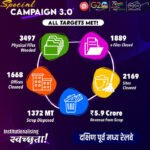 बिलासपुर। एसईसीएल द्वारा, नए कीर्तिमान स्थापित करते हुए भारत सरकार के विशेष अभियान 3.0 की 31 अक्टूबर 2023 को समाप्ति की गई। अभियान के तहत चिन्हित जगहों की सफाई एवं स्क्रैप निस्तारण में एसईसीएल कोल इंडिया की सभी अनुषंगी कंपनियों में सबसे आगे रही। 2 अक्टूबर से शुरू होकर 31 अक्टूबर तक चलने वाले इस अभियान में एसईसीएल द्वारा मुख्यालय एवं विभिन्न संचालन क्षेत्रों में निर्धारित लक्ष्य 120 स्थानों को पीछे छोड़ते हुए 160 से ज़्यादा जगहों को साफ किया गया है और इस प्रकार लगभग 29 लाख वर्ग फुट से अधिक का क्षेत्र स्क्रैप मुक्त हुआ है जोकि लक्ष्य से लगभग 7 लाख वर्ग फुट अधिक रहा। स्क्रैप निस्तारण की बात करें तो कंपनी द्वारा 2000 मेट्रिक टन से अधिक स्क्रैप हटाया गया जिससे 10 करोड़ से अधिक का राजस्व प्राप्त हुआ। भारत सरकार के प्रशासनिक सुधार और लोक शिकायत विभाग द्वारा इस साल 2 अक्टूबर से 31 अक्टूबर तक विशेष अभियान 3.0 चलाने की घोषणा की गई थी, जिसमें साफ-सफाई एवं स्क्रैप/कबाड़ के निस्तारण के साथ सरकारी कार्यालयों में लंबित फाइलों के निपटान पर विशेष ध्यान दिया जा रहा है।