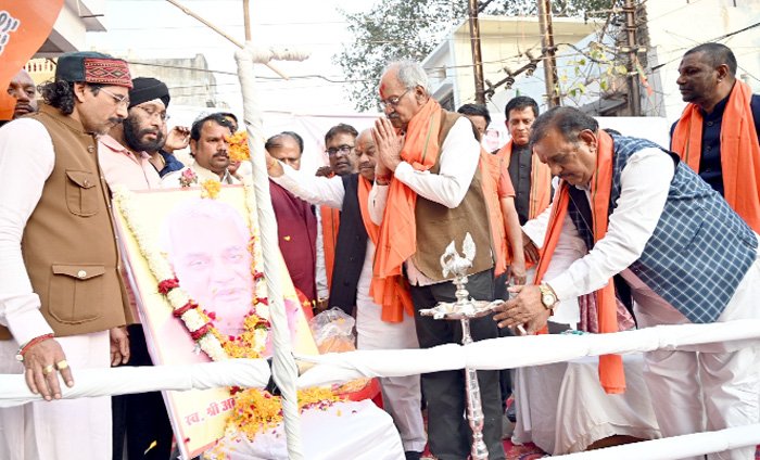 रायपुर। भाजपा झुग्गी झोपड़ी प्रकोष्ठ देश के पूर्व प्रधानमंत्री भारतरत्न स्व. श्री अटल बिहारी वाजपेयी जी की जन्मशताब्दी को अटल स्मृति वर्ष के रूप में मनाते हुए प्रदेश के सभी जिलो में झुग्गी झोपड़ी में रहने वाले को कम्बल वितरण, बुजुर्गों का शाल व श्रीफल से सम्मान एवं समरसता भोज का आयोजन किया गया जिसमें प्रदेश के हर जिलों में स्थानीय सांसद विधायक भाजपा जिलाध्यक्ष सहित जनप्रतिनिधि उपस्थित रहे।