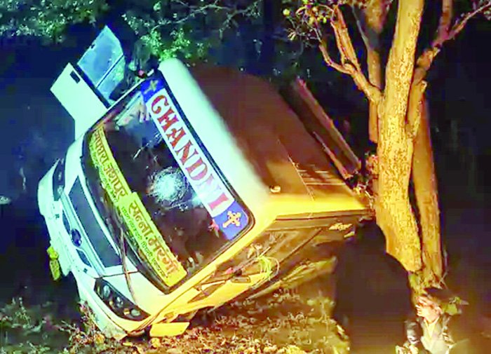NavinKadam > जशपुरनगर > शादी से लौट रही बस पलटी, 50-60 यात्री बाल-बाल बचे, ड्राइवर फरार, एक युवती घायल