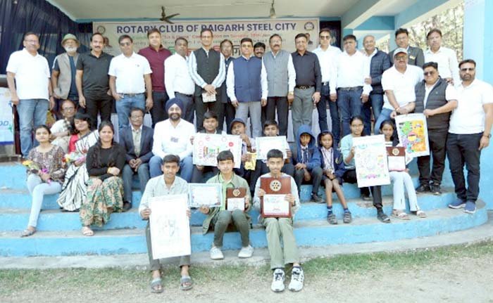 रायगढ़। सामाजिक संस्था रोटरी क्लब ऑफ रायगढ़ स्टील सिटी अध्यक्ष कमलेश अग्रवाल, कार्यक्रम अध्यक्ष प्रीतपाल सिंह टूटेजा, सह कार्यक्रम प्रायोजक आशीष पोद्दार व सचिव डॉ सतीश अग्रवाल के विशेष मार्गदर्शन में आज सुबह 9 बजे से शहर के कमला नेहरु पार्क में नि:शुल्क चित्रकला प्रतियोगिता का भव्य आयोजन किया गया। इस प्रतियोगिता के अंतर्गत रायगढ़ ब्लॉक के विभिन्न स्कूलों के लगभग 1200 बच्चों ने अपने मन के जज्बात को कैनवास पर खूबसूरत ढंग से उतारकर समाज को का संदेश समाज को गाँव और नदी किनारे का दृश्य, यातायात जागरूकता व कृत्रिम बुद्धिमत्ता (एआई) के साथ तकनीक एवं सेवाएँ का संदेश देकर उपस्थित तमाम लोगों का मन हर्षित किया।