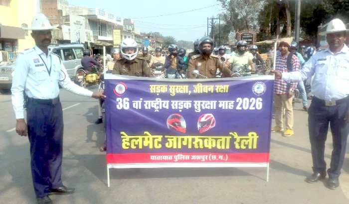 जशपुरनगर। वरिष्ठ पुलिस अधीक्षक जशपुर शशि मोहन सिंह के दिशा निर्देश पर दुर्घटनाओं में कमी व यातायात नियमों के प्रति जागरूकता लाने जशपुर पुलिस 1 जननवरी से 31 जनवरी तक विशेष अभियान सडक़ सुरक्षा माह मना रही है, जिसके तहत जशपुर पुलिस विभिन्न कार्यक्रमों के माध्यम से, आम नागरिकों को यातायात नियमों के पालन व उनकी महत्व के संबंध में उनके मध्य में जाकर जागरूक कर रही है, जिससे कि आम नागरिक, यातायात नियमों के पालन के प्रति जागरूक रहे व भावी दुर्घटनाओं से बच सकें।
