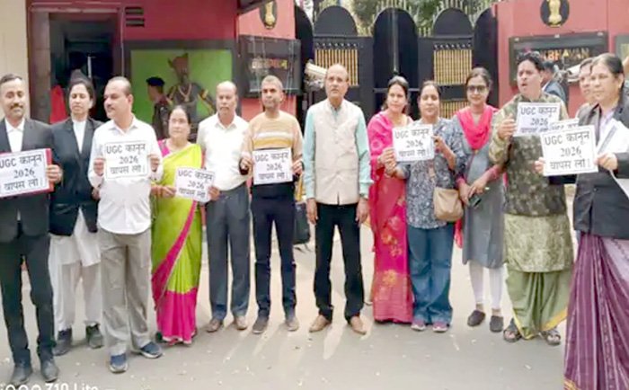 रायपुर। प्रदेश में अखंड ब्राह्मण समाज सेवा समिति ने यूजीसी कानून के विरोध में राज्यपाल को ज्ञापन सौंपा है। संगठन ने कहा है कि यदि यूजीसी के नियम वापस नहीं लिए गए, तो वे उग्र आंदोलन करेंगे। पदाधिकारियों का कहना है कि यह नियम भेदभावपूर्ण है और इससे सामान्य वर्ग के बच्चों को आगे चलकर परेशानी झेलनी पड़ेगी। लोकभवन में संगठन के विधि प्रकोष्ठ की प्रदेश प्रमुख एडवोकेट निवेदिता मिश्रा और एडवोकेट राजीव द्विवेदी के नेतृत्व में राज्यपाल को ज्ञापन सौंपा गया। इस ज्ञापन के जरिए उन्होंने कानून पर पुनर्विचार करने की मांग की।