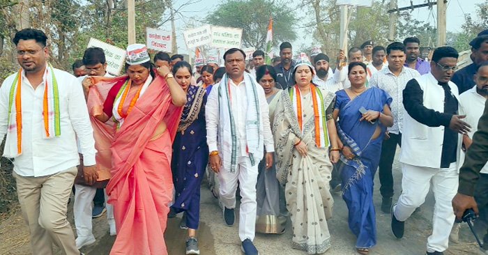 प्रदेश अध्यक्ष दीपक बैज पदयात्रा के दौरान किसानों व मजदूरो से सीधे संवाद किया और गांव के बच्चों को गोद में पकड़ा। कांग्रेस प्रदेश अध्यक्ष दीपक बैज ने सभा को संबोधित करते हुए कहा कि डबल इंजन की सरकार मनरेगा की रोजगार गारंटी को कमजोर करने की साजि़श रच रही है यदि मनरेगा को इस तरह बदला गया तो ग्रामीण मजदूरों को रोजगार का संकट खड़ा हो जाएगा मजबूरी में पलायन करना पड़ेगा। छग सरकार द्वारा बिजली बिल पर बढ़ोतरी, एवं किसानों के धान खरीदी में हो रही परेशानी को लेकर राज्य सरकार पर भडक़े। पूर्व मंत्री खरसिया विधायक उमेश पटेल ने सभा को संबोधित करते हुए कहा कि किसानों को भौतिक सत्यापन के नाम पर परेशान कर रही है जिसके लिये हम किसानों के हित मे डटे हुए हैं। सारंगढ बिलाईगढ़ जिला कांग्रेस अध्यक्ष ताराचन्द देवांगन, विधायक उत्तरी गनपत जांगड़े, बिलाईगढ़ विधायक कविता प्राण लहरे ने भी सभा को संबोधित किया।