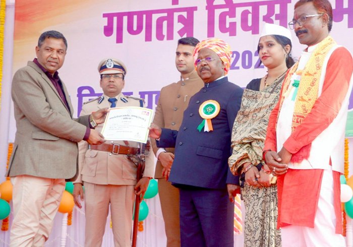 धरमजयगढ़। जिला स्तरीय गणतंत्र दिवस कार्यक्रम में शिक्षा विभाग से राजीव गुप्ता व्याख्याता एवं निरंजन पटेल सहायक शिक्षक श्री रामविचार नेताम मंत्री छत्तीसगढ़ शासन के हाथों कलेक्टर मयंक चतुर्वेदी के उपस्थिति में सम्मानित हुए। रायगढ़ जिला के धरमजयगढ़ विकास खंड के सुदूर वनांचल क्षेत्र में स्थित शासकीय उच्चतर माध्यमिक विद्यालय कटाईपाली सी में राजीव गुप्ता व्याख्याता के पद पर पदस्थ है उन्होंने प्रभारी प्राचार्य का दायित्व निर्वहन करते हुए विद्यालय को एक आदर्श विद्यालय के रूप मे विकसित किया है। उनके प्रयास से विद्यालय की सभी कक्षाएं डिजिटल बोर्ड से सुसज्जित हैं। विद्यालय में बहुत सुंदर शैक्षणिक वातावरण बना हुआ है हरियाली और उद्यानिकी, स्वच्छता, सौंदर्यीकरण वहां की विशेषता है। बच्चों में अनुशासन और उत्कृष्ट परीक्षा परिणाम हेतु सतत् प्रयास करते हुए उच्च अधिकारियों के माध्यम से परीक्षा पर चर्चा, एवं मोटोवेशन कक्षाओं का आयोजन कर प्रोत्साहित करते हैं। वहीं शासकीय प्राथमिक विद्यालय लामीखार के शिक्षक निरंजन पटेल ने विद्यालय को ही अपना सबकुछ मानकर विद्यार्थियों को उत्कृष्ट शिक्षा देना अपना धर्म मान लिया है। बच्चों को प्रतियोगिता परीक्षा के लिए तैयार करने हेतु घर को ही बालक बालिका आश्रम की तरह रखे हुए है। विद्यालय सुदूर वनांचल में होते हुए भी विद्यार्थियों का शैक्षणिक स्तर अदभुत है जो निरीक्षकों को आह्लादित करता है विद्यालय का वातावरण रमणीय है जिस कारण क्षेत्रीय जनप्रतिनिधि एवम् अधिकारियों के लिए आकर्षण का केंद्र बना हुआ है। जिला कलेक्टर मयंक चतुर्वेदी विद्यालय में पहुंच कर बच्चो को अपना शुभाशीष प्रदान कर चुके है।इन्ही प्रयासों को जिला शिक्षा अधिकारी डॉ के व्ही राव एवम् जिला मिशन समन्वयक आलोक स्वर्णकार ने प्रोत्साहित करते हुए सम्मान के लिए चयन किया। शिक्षक द्वय ने बताया कि विद्यालय को अच्छा करने में धरमजयगढ़ विकास खण्ड के शिक्षा अधिकारी का प्रोत्साहन भी प्राप्त होता रहता है।