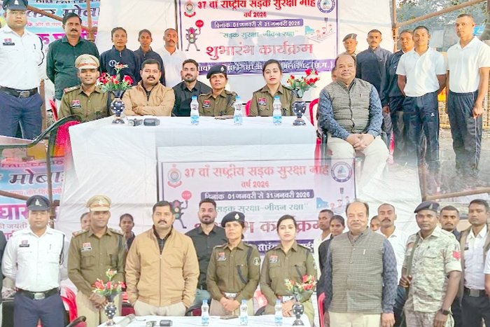 सारंगढ़। राष्ट्रीय सडक़ सुरक्षा माह 26 का शुभारंभ 1 जनवरी 26 को पुलिस अधीक्षक आंजनेय वार्ष्णेय (भापुसे) के निर्देशन में अतिरिक्त पुलिस अधीक्षक श्रीमती निमिषा पाण्डेय अतिरिक्त पुलिस अधीक्षक अविनाश मिश्रा,एसडीपीओ सारंगढ़ श्रीमती स्नेहिल साहू के मार्गदर्शन में यातायात टीम के द्वारा चैम्बर ऑफ कॉमर्स के सदस्यों,पत्रकार बंधुओं एवं अन्य गणमान्य नागरिकों की उपस्थिति में भारत माता चौक में यातायात जागरूकता का शुभारंभ किया गया। जिस दौरान प्रोजेक्टर में वीडियो के माध्यम से लोगो को जागरूक किया गया। इस दौरान यातायात जागरूकता हेतु नुक्कड़ नाटक,बाजार, स्कूल, कॉलेज, बैंक,यात्री प्रतीक्षालय चौंक चौराहों में जाकर पाम्पलेट वितरण व पोस्टर के माध्यम से आम जनों को यातायात नियमों का पालन करने के लिए जागरूक किया गया तथा आम नागरिकों को हेलमेट लगाने प्रोत्साहित करने हेतु मोटरसाइकिल हेलमेट रैली भी निकाला गया। सडक़ सुरक्षा माह में यातायात पुलिस द्वारा जिले के अलग अलग स्कूलों में कॉलेजों में एवं अन्य संस्थानों में जागरूकता कार्यकम चलाया गया।जिसमे लगभग 2500-3000 के करीब बच्चे और शिक्षकों ने यातायात सुरक्षा संबंधी जानकारी ली जिसका स्वयं पालन करने और अपने परिवार के सदस्यों को जागरूक करने के उद्देश्य से हामी भरी। यातायात जागरूकता हेतु रंगोली प्रतियोगिता, निबंध लेखन, पेंटिंग प्रतियोगिता कराया गया एवं विजेताओं को सम्मानित किया गया।