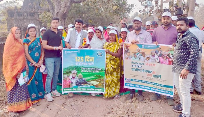 रायगढ़। व्ही बी जी राम जी कार्यक्रम के तहत आज खरसिया के छाया विधायक महेश साहू ने खरसिया विधानसभा के ग्राम लेबड़ा के अंर्तगत चारभाठा में कार्य कर रहे ग्रामीणजनों से मुलाकात कर ‘विकसित भारत गारंटी फ़ॉर रोजगार आजीविका मिशन’ (ग्रामीण) के योजनाओ के बारे विस्तार से अवगत कराया। इस दौरान जिला कोषाध्यक्ष सनत नायक, अल्पसंख्यक मोर्चा जिला उपाध्यक्ष साहिल मनियार किरोड़ीमल मंडल महामंत्री गजेन्द्र यादव, मंडल प्रभारी गुरुदास महंत, खिलेश डनसेना, राजेश पटेल राम जाने भारद्वाज सहित ग्रामीण जनों की मौजूदगी रही।
