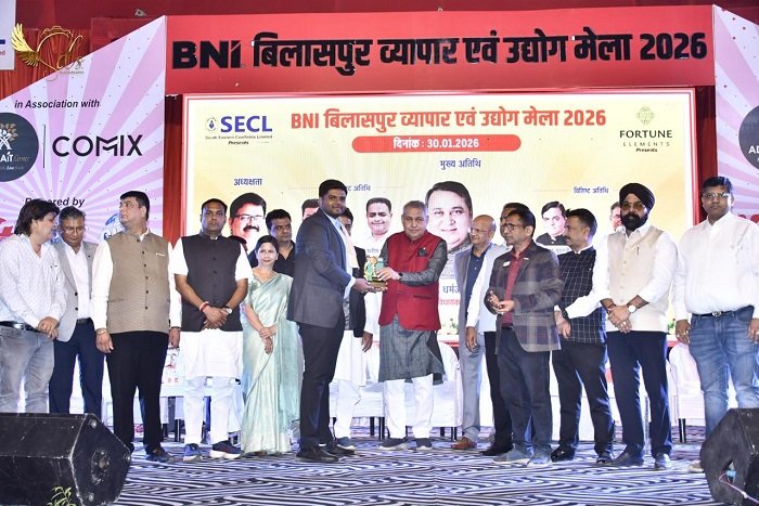 रायगढ़। छत्तीसगढ़ की न्यायधानी बिलासपुर में आयोजित बीएनआई व्यापार एवं उद्योग मेला 2026 ने एक बार फिर स्थानीय उद्यमिता और नवाचार की मिसाल पेश की है। 29 जनवरी से 3 फरवरी तक चलने वाले इस मेले के दूसरे दिन, यानी 30 जनवरी को, एक भव्य समारोह में छत्तीसगढ़ के विभिन्न क्षेत्रों से आए व्यापारिक रत्नों का सम्मान किया गया।