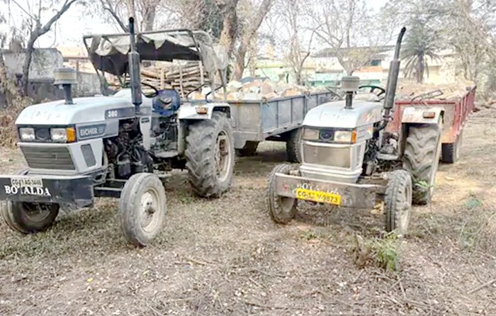 बोल्डर से भरे 2 ट्रैक्टर जब्त° अवैध उत्खनन पर उडऩदस्ता ने की कार्रवाई