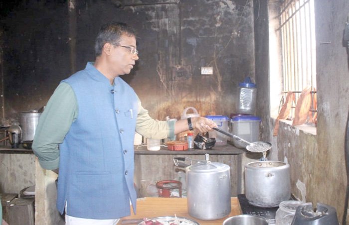 सारंगढ़। कलेक्टर डॉ संजय कन्नौजे ने बरमकेला में संचालित प्री मैट्रिक अजजा बालक छात्रावास व कन्या छात्रावास तथा आदर्श प्री मैट्रिक अजजा कन्या छात्रा वास लेन्धरा का निरीक्षण कियें। लेंधरा में कलेक्टर के निरीक्षण समय बालिकाएं दोपहर का सामूहिक खाना खा रही थीं। कलेक्टर ने रसोई कक्ष, शयन कक्ष और परिसर का अवलोकन कियें साथ ही परिसर में मेथी, धनिया, लाल भाजी और प्याज खेती का अवलोकन कियें। उन्होंने बरमकेला क्षेत्र में आदिवासी विकास विभाग के अधीक्षक गिरवर नायक को एक तरफ का बाउंड्रीवाल करने के निर्देश दिए। कलेक्टर ने कहा कि परिसर में सब्जी भाजी के लिए पर्याप्त मात्रा में जमीन है, इसका उपयोग सेमी, तोरई, करेला, बैगन, टमाटर आदि का कृषि व उद्यानिकी विभाग के ड्रिप स्प्रींकलर पद्धति से खेती कर सब्जी भाजी का उपयोग छात्रावास सहित सरकारी स्कूलों में करने मैदानी अधिकारियों को निर्देश दिए।