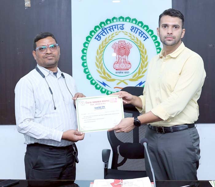 उल्लेखनीय है कि राज्य शासन द्वारा शासकीय कार्यों में पारदर्शिता, गति एवं गुणवत्ता लाने के उद्देश्य से इस विशेष नवाचार की शुरुआत 01 फरवरी 2026 से की गई है। इस व्यवस्था के अंतर्गत शासन द्वारा संचालित महत्वपूर्ण योजनाओं एवं कार्यक्रमों के सफल क्रियान्वयन में सक्रिय भूमिका निभाने वाले कर्मचारियों को सम्मानित कर उनकी सेवाओं को सार्वजनिक रूप से पहचान दी जा रही है। इस अवसर पर डीएफओ रायगढ़ श्री अरविंद पीएम, जिला पंचायत सीईओ श्री अभिजीत बबन पठारे, नगर निगम आयुक्त श्री बृजेश सिंह क्षत्रिय, अपर कलेक्टर श्री अपूर्व प्रियेश टोप्पो, श्री रवि राही, डॉ.प्रियंका वर्मा, संयुक्त कलेक्टर श्री राकेश गोलछा, श्रीमती पूजा बंसल, डिप्टी कलेक्टर श्री धनराज मरकाम सहित विभिन्न विभागों के जिला स्तरीय अधिकारी उपस्थित थे।