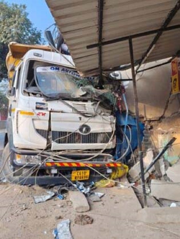 बेलगाम फ्लाईएश वाहन बिजली खंभा को तोड़ते हुए दुकान में घुसा