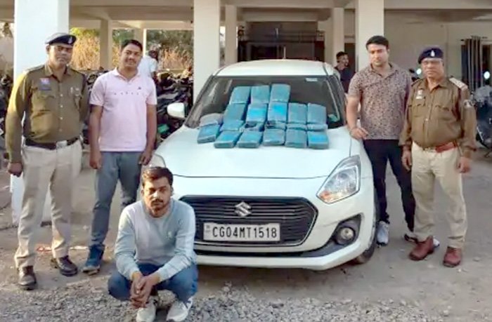 रायपुर। ओडिशा से गांजा लाकर रायपुर में बेचने की कोशिश कर रहे एक अंतर्राज्यीय तस्कर को पुलिस ने गिरफ्तार किया है। इस दौरान आरोपी के दो साथी पुलिस वाहन को आते देख कार से उतरकर भाग गए। जिनकी तलाश की जा रही है। वहीं, गिरफ्तार आरोपी की पहचान प्रयागराज (उत्तर प्रदेश) निवासी हिमांशु केशरवानी के रूप में हुई है।