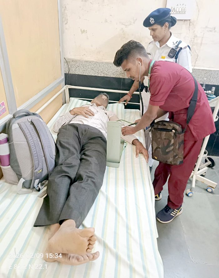 बिलासपुर। बिलासपुर रेलवे स्टेशन पर आज वाणिज्य विभाग की स्पेशल टीम की त्वरित एवं संवेदनशील कार्रवाई से एक अस्वस्थ वरिष्ठ यात्री को समय पर चिकित्सा सहायता उपलब्ध कराते हुए सुरक्षित राहत प्रदान की गई। संबंधित यात्री भिलाई से कोरबा की यात्रा कर रहे थे तथा बिलासपुर स्टेशन पर उन्हें कोरबा जाने के लिए ट्रेन बदलनी थी। इसी दौरान बिलासपुर रेलवे स्टेशन परिसर में अचानक उनकी तबीयत बिगडऩे से वे अचेत हो गए।