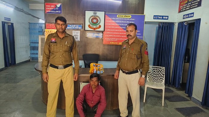 कोतरारोड़ थाना प्रभारी निरीक्षक मोहन भारद्वाज के नेतृत्व में मुखबिर सूचना पर किरोडीमल नगर स्थित शराब भट्टी के पास कार्रवाई करते हुए आरोपी मुरलीधर चौहान (41 वर्ष), निवासी उच्चभि_ी, थाना कोतरारोड़ को पकड़ा गया। आरोपी के कब्जे से प्लास्टिक थैले में रखी 35 पाव रोमियो देशी शराब, कुल 6.300 लीटर, अनुमानित कीमत 2,800 रुपये जप्त की गई।