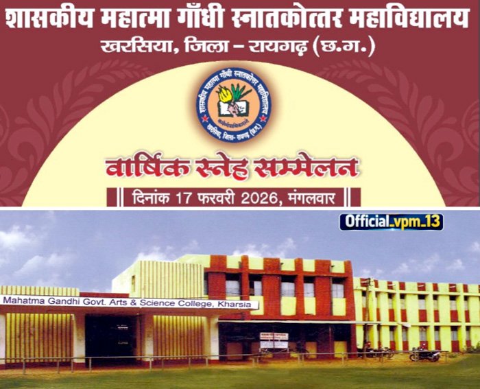 खरसिया। शासकीय महात्मा गांधी स्नातकोत्तर महाविद्यालय, खरसिया में आयोजित वार्षिक छात्र स्नेह सम्मेलन 2025-26 के अंतर्गत 11 फरवरी से 14 फरवरी तक विविध शैक्षणिक एवं सह-शैक्षणिक प्रतियोगिताओं का सफल आयोजन किया गया। चार दिनों तक चले इस आयोजन में विद्यार्थियों ने उत्साहपूर्वक भाग लेकर अपनी प्रतिभा का उत्कृष्ट प्रदर्शन किया। प्रतियोगिताओं के परिणाम 14 फरवरी को घोषित कर दिए गए।