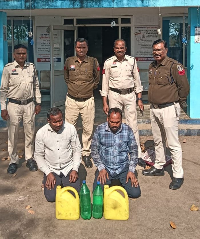 खरसिया थाना पुलिस को मुखबिर से सूचना मिली कि एक व्यक्ति ग्राम कोडाभाठा गीधा क्षेत्र में अवैध रूप से कच्ची महुआ शराब परिवहन कर रहा है। सूचना पर पुलिस टीम ने गवाहों को नोटिस देकर मौके पर पहुंचकर रेड कार्रवाई की, जहां आरोपी शिव प्रसाद डनसेना पिता तीजराम डनसेना उम्र 38 वर्ष निवासी कोडाभाठा गीधा को पकड़ा गया। आरोपी के कब्जे से कुल 7 लीटर कच्ची महुआ शराब कीमती 1,400 रुपये बरामद कर जब्त किया गया। इसी तरह ग्राम गीधा नहरपार में तिरथराम डनसेना पिता स्व. डमरूधर डनसेना उम्र 36 वर्ष के कब्जे से 7 लीटर महुआ शराब कीमती 1,400 रुपये जब्त कर आरोपी को गिरफ्तार किया गया। दोनों मामलों में आरोपियों के विरुद्ध धारा 34(2), 59(क) आबकारी एक्ट के तहत अपराध दर्ज कर विवेचना में लिया गया है।