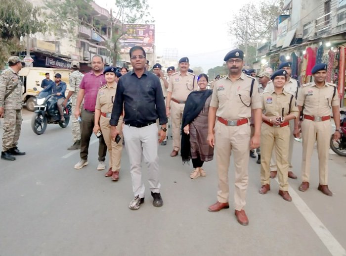 अधिकारियों ने आम जन से सीधे संवाद कर सुरक्षित और संयमित होली मनाने की अपील की।थाना परिसर से निकले पैदल मार्च में एसडीएम वर्षा बंसल, अतिरिक्त पुलिस अधीक्षक निमिषा पांडे, एसडीओपी स्नेहिल साहू, तहसीलदार एनके. सिन्हा, प्रकाश पटेल, थाना प्रभारी हक, यातायात प्रभारी जितेन्द्र चंद्रा सहित अन्य प्रशासनिक एवं पुलिस अधिकारी शामिल रहे। मुख्य मार्गों से गुजरते हुए अधिकारियों ने व्यापारियों, युवाओं और नागरिकों से कानून – व्यवस्था बनाए रखने का आग्रह किया।