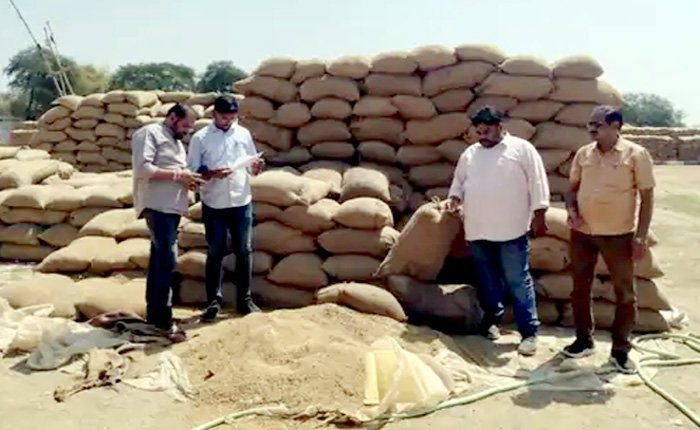Reading: धान के बोरों पर कर्मचारियों ने डाला पानी