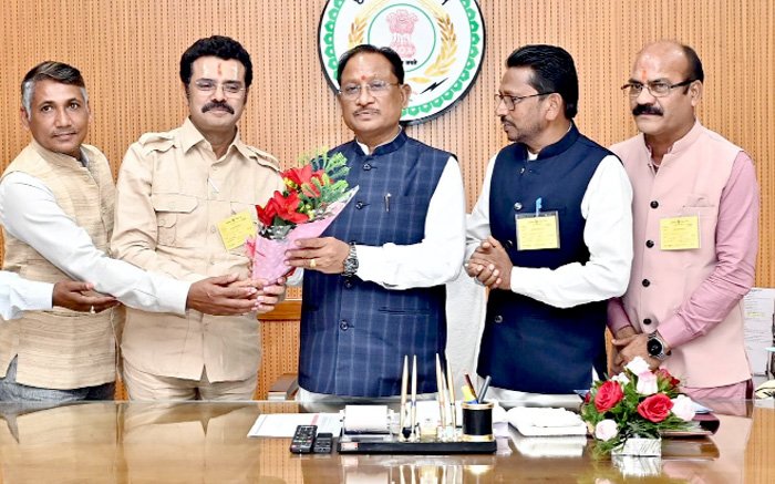 रायपुर। मुख्यमंत्री विष्णु देव साय से आज यहाँ विधानसभा भवन स्थित उनके कार्यालय में जगदलपुर के महापौर श्री संजय पाण्डेय के नेतृत्व में प्रतिनिधिमंडल ने सौजन्य मुलाकात की। प्रतिनिधिमंडल ने इंद्रावती नदी पर नए बैराज निर्माण की स्वीकृति मिलने पर मुख्यमंत्री को पुष्प गुच्छ भेंट कर आभार व्यक्त किया। प्रतिनिधिमंडल ने बताया कि इस नए बैराज के माध्यम से जगदलपुर शहर में पेयजल आपूर्ति सुचारू रूप से हो पाएगी।