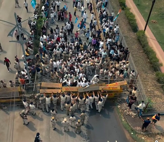 जैसे ही प्रदर्शनकारी कलेक्ट्रेट पहुंचे, पुलिस ने उन्हें रोकने के लिए दो बैरिकेड लगा रखे थे। एनएसयूआई कार्यकर्ताओं ने शांतिपूर्वक अपनी बात रखी और आगे बढऩे का प्रयास किया। इस दौरान पुलिस और प्रदर्शनकारियों के बीच नोकझोंक हुई। कार्यकर्ताओं ने पुलिस के दोनों बैरिकेड तोड़ दिए, जिसके बाद पुलिस ने प्रदर्शनकारियों पर वॉटर कैनन का प्रयोग किया। पानी की बौछारों के बावजूद छात्र डटे रहे और अपनी मांगों पर अड़े रहे।