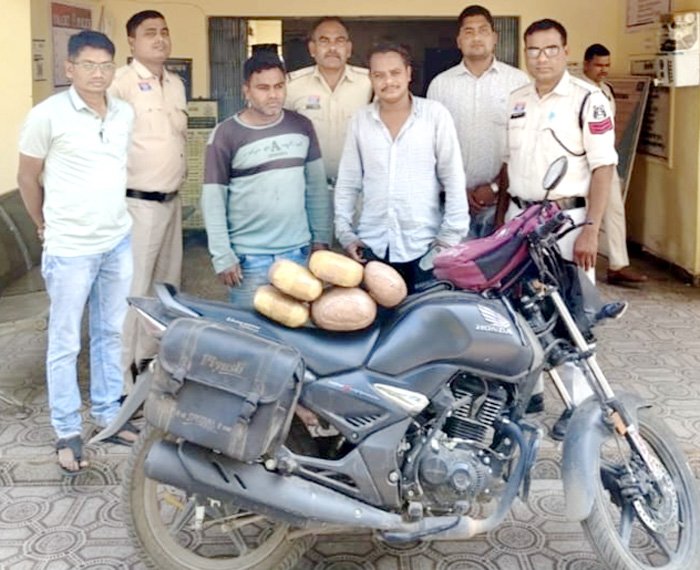 सारंगढ़। जिले में नशे के कारोबार पर लगाम कसने के लिए कप्तान आंजनेय वार्ष्णेय के निर्देशन में पुलिस लगातार सख्त कार्यवाही कर रही है। इसी कड़ी में थाना प्रभारी शिव कुमार धारी के नेतृत्व में पुलिस टीम ने बड़ी सफलता हासिल करते हुए 6 किलो गांजा के साथ दो आरोपियों को गिरफ्तार किया है। पुलिस अधीक्षक के निर्देश पर, अति. पुलिस अधीक्षक निमिषा पांडे व एसडीओपी विजय ठाकुर द्वारा अवैध गतिविधियों में संलिप्त व्यक्तियों पर विशेष निगरानी रखने के निर्देश दिए गए थे। निर्देशों के पालन में 18 मार्च 26 को पुलिस को मुखबिर से सूचना मिली कि – दो व्यक्ति बिना नंबर मोटर साइकिल से मादक पदार्थ लेकर भटगांव की ओर जा रहे हैं। सूचना मिलते ही थाना प्रभारी शिवकुमार धारी के नेतृत्व में पुलिस टीम ने तत्परता दिखाते हुए घेराबंदी कर संदिग्धों को रोका। पूछताछ में आरोपी ने अपना नाम रंजू साहू ग्राम बलगी, कोरबा और लक्ष्मण दास मानिकपुरी ग्राम नवापारा, कटघोरा बताया। पुलिस द्वारा विधिवत नोटिस देकर तलाशी पंचनामा तैयार किया गया। तलाशी के दौरान मोटर साइकिल पर रखे लाल रंग के बैग एवं डिक्की से प्लास्टिक झिल्ली में भरा हुआ कुल 6 किलो मादक पदार्थ गांजा बरामद किया। बरामद गांजा की अनुमानित कीमत 30 हजार रुपये, मोटरसाइकिल (यूनिकॉर्न) की कीमत लगभग 40 हजार रुपये आंकी गई है। इस प्रकार कुल 70 हजार रुपये की सामग्री जब्त की गई। पुलिस ने दोनों आरोपी के विरुद्ध हृष्ठक्कस् एक्ट की धारा 20 (बी) के तहत मामला दर्ज कर उन्हें विधिवत गिरफ्तार किया और न्यायालय में प्रस्तुत किया, जहां से उन्हें न्यायिक रिमांड पर भेज दिया गया।