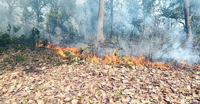 नारायणपुर सर्किल के बरडाँड़-नारायणपुर बीट के कक्ष क्रमांक 58 स्थित कारीडाँड़ जंगल में रविवार दोपहर लगभग 12 बजे अज्ञात लोगों द्वारा आग लगा दी गई। यह वही इलाका है जहां पहले भी आग लग चुकी है और जंगल का बड़ा हिस्सा जल चुका है। हैरानी की बात यह है कि पहले से प्रभावित क्षेत्र होने के बावजूद यहां कोई विशेष निगरानी नहीं रखी गई। परिणामस्वरूप एक बार फिर आग भडक़ उठी और देखते ही देखते जंगल के दूसरे हिस्से को भी अपनी चपेट में ले लिया।