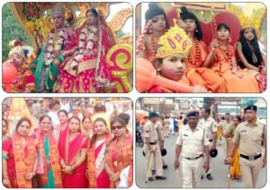 वहीं इस बार की ऐतिहासिक भव्य श्रीराम नवमीं शोभा यात्रा में सबसे बड़ा आकर्षण पंजाब का पाइप बैंड, उड़ीसा का काला हांडी कटप्पा, सुआ नृत्य, पंथी नृत्य, कोलकाता के कार्टून, आदिवासी नृत्य युवती महिला कर्मा, भालू झांकी डांस, भगवान शिव पार्वती व नंदी की जीवंत झांकी श्रीराधा कृष्ण का जीवंत नृत्य गीत सहित अनेक मनभावन झांकियां विशेष आकर्षण का केंद्र रही जिसे देखकर शहरवासी अत्यंत ही हर्षित हो गए और कलाकारों की प्रस्तुति की सभी ने बेहद सराहना की।