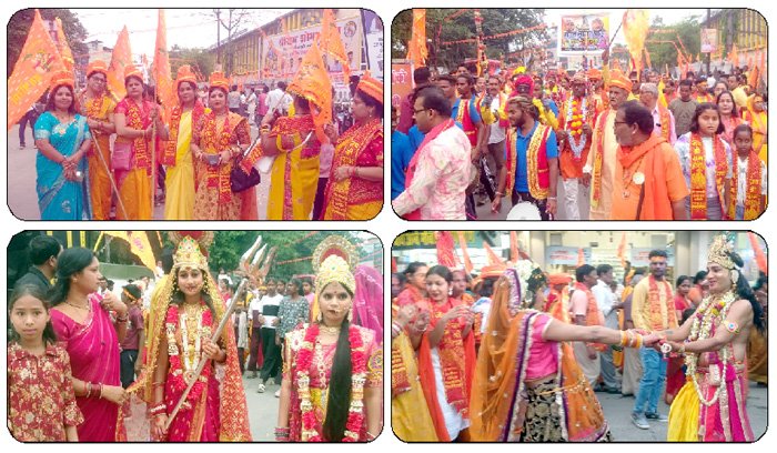 शहरवासियों को भगवान श्रीराम की शोभा यात्रा का हृदय से इंतजार था और इस ऐतिहासिक यादगार मनभावन शोभा यात्रा में हिंदू समाज के हर उम्र के लोगों में खुशी साफ झलक रही थी। जैसे ही श्रीराम नवमीं आयोजन समिति द्वारा आयोजित ऐतिहासिक शोभा यात्रा की घड़ी करीब आई व शाम चार बजे के पूर्व से ही नटवर स्कूल मैदान में श्रद्धालुओं की भीड़ उमडऩे लगी और देखते ही देखते भक्तों का अनंत जमावड़ा हो गया और समूचा शहर भगवान श्रीराम के नारे, मधुर गीत, ढ़ोल नगाड़े, आतिशबाजी व जय – जय श्री राम के जयघोष से गुंजायमान हो गया।